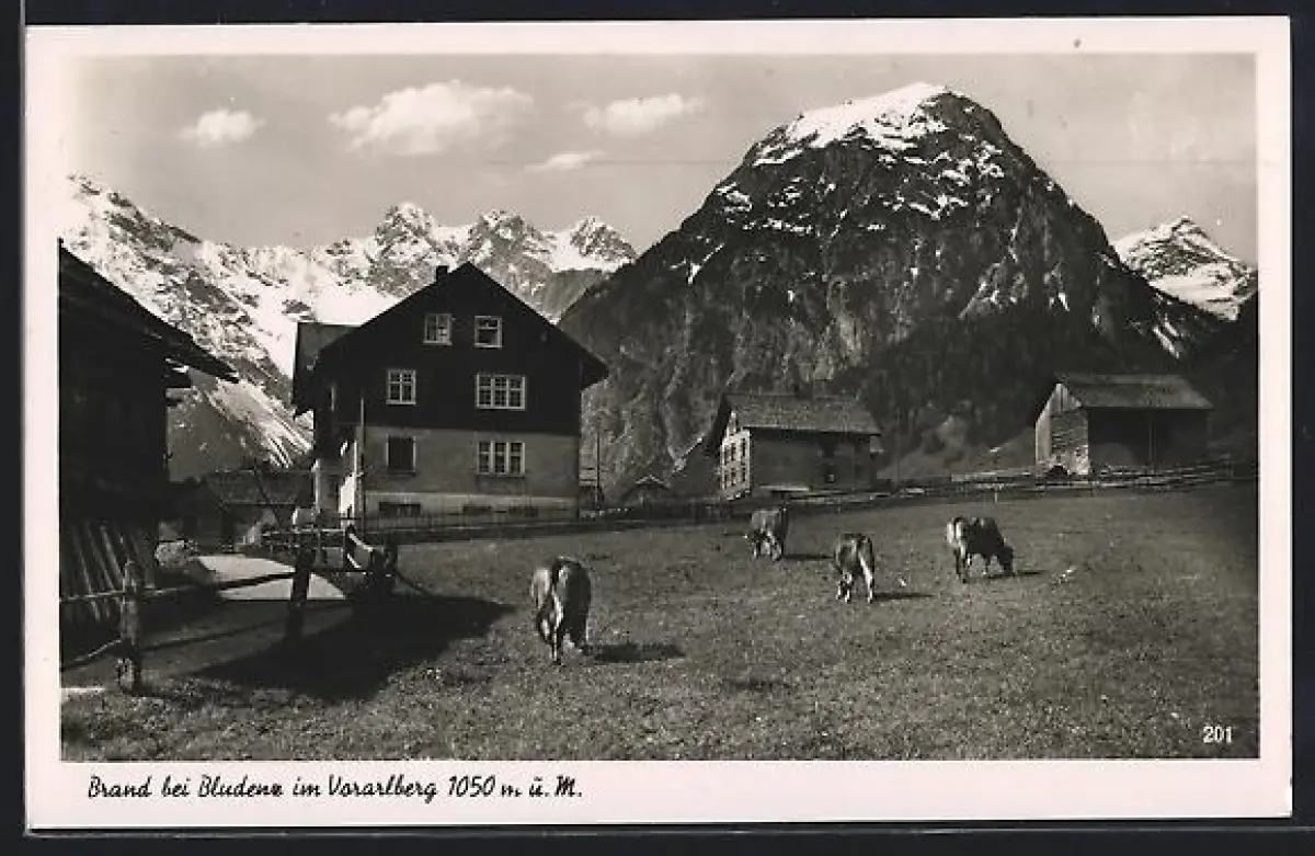 AK Brand bei Bludenz, Ort mit Gehöften und Weide