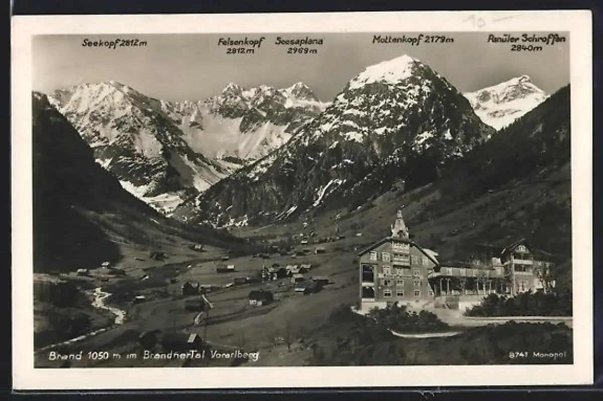 AK Brand im Brandnerthal, Bergpanorama mit Hotel