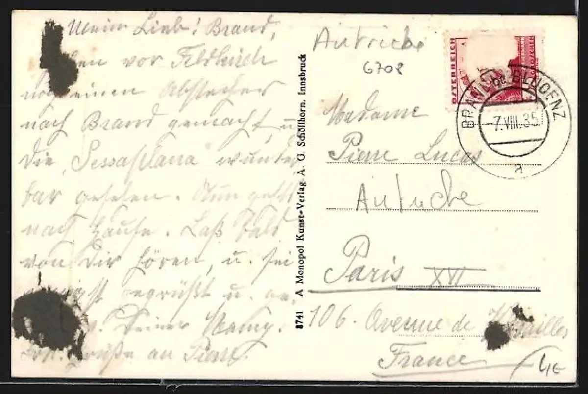 gelaufen 1935, rückseitig Klebe- und Papierreste, guter Zustand