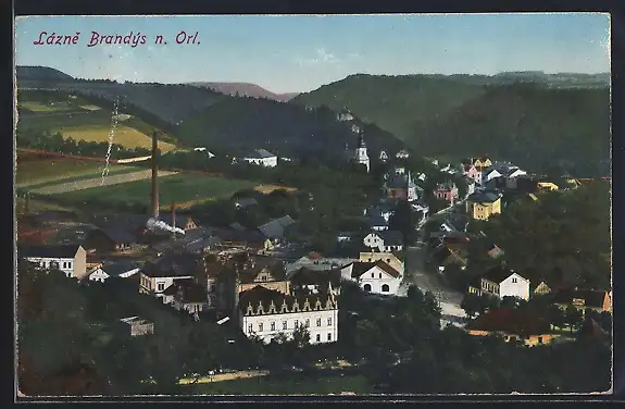 AK Brandys nad Orl., Ortsansicht mit Fernblick aus der Vogelschau