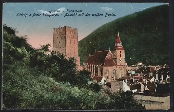 AK Brasso-Kronstadt, Latkep a feher bastyaval, Ansicht mit der weissen Bastei