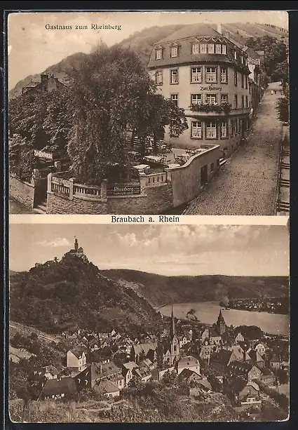 AK Braubach a. Rh., Gasthaus zum Rheinberg, Ortsansicht