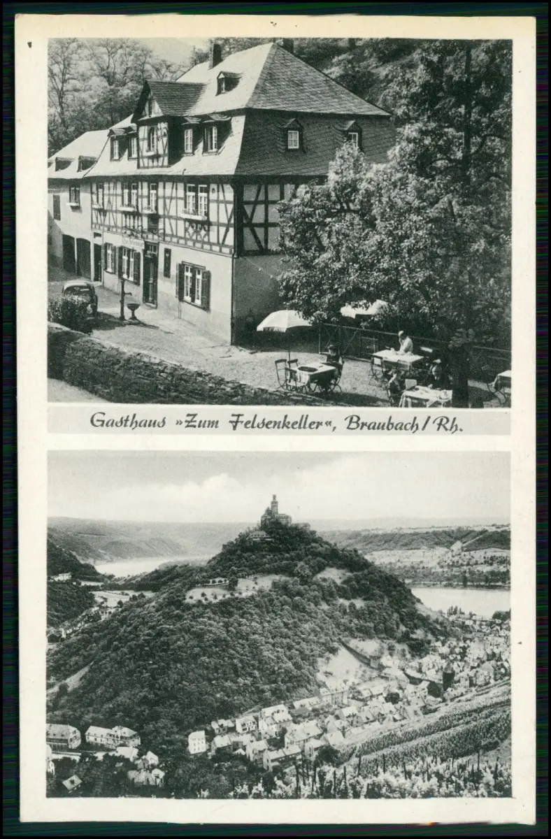 AK - Braubach am Rhein - Gasthaus Felsenkeller Marksburg Burgansicht Weinstadt