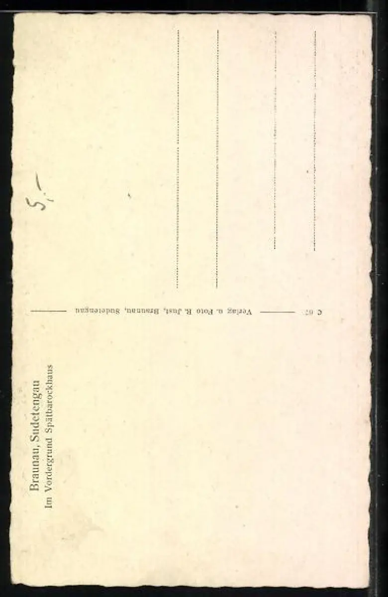AK Braunau, Benediktiner-Kloster, im Vordergrund Spätbarockhaus