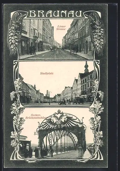 AK Braunau, Linzer Strasse, Stadtplatz, Österr. Brückenabschluss