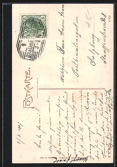 alte Ansichtskarte, gelaufen 1907, guter Zustand