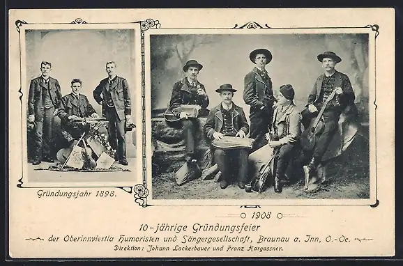 AK Braunau a. Inn, 10 jährige Gründungsfeier der Oberinnviertla Humoristen und Sängergesellschaft 1898-1908