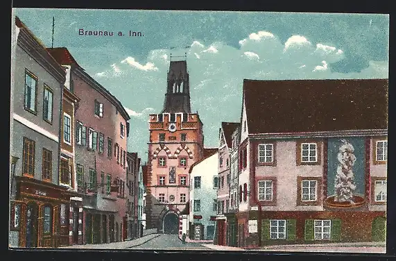 AK Braunau a. Inn, Teilansicht mit Torbogen