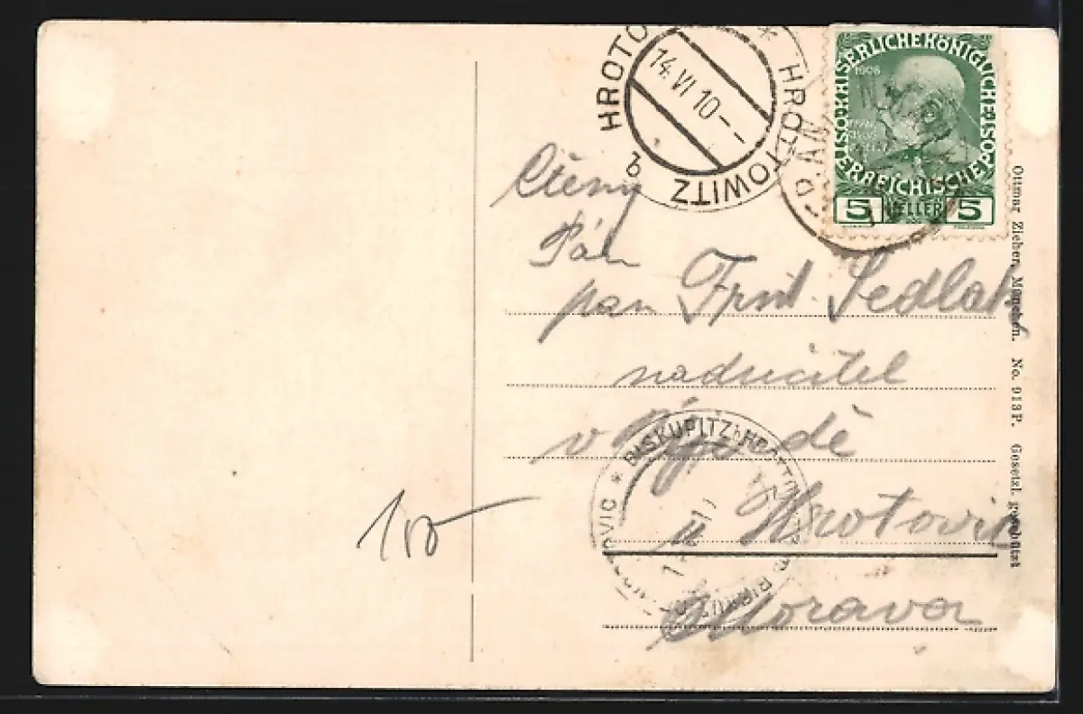 alte Ansichtskarte, gelaufen 1910, Eckknick li. oben, guter Zustand
