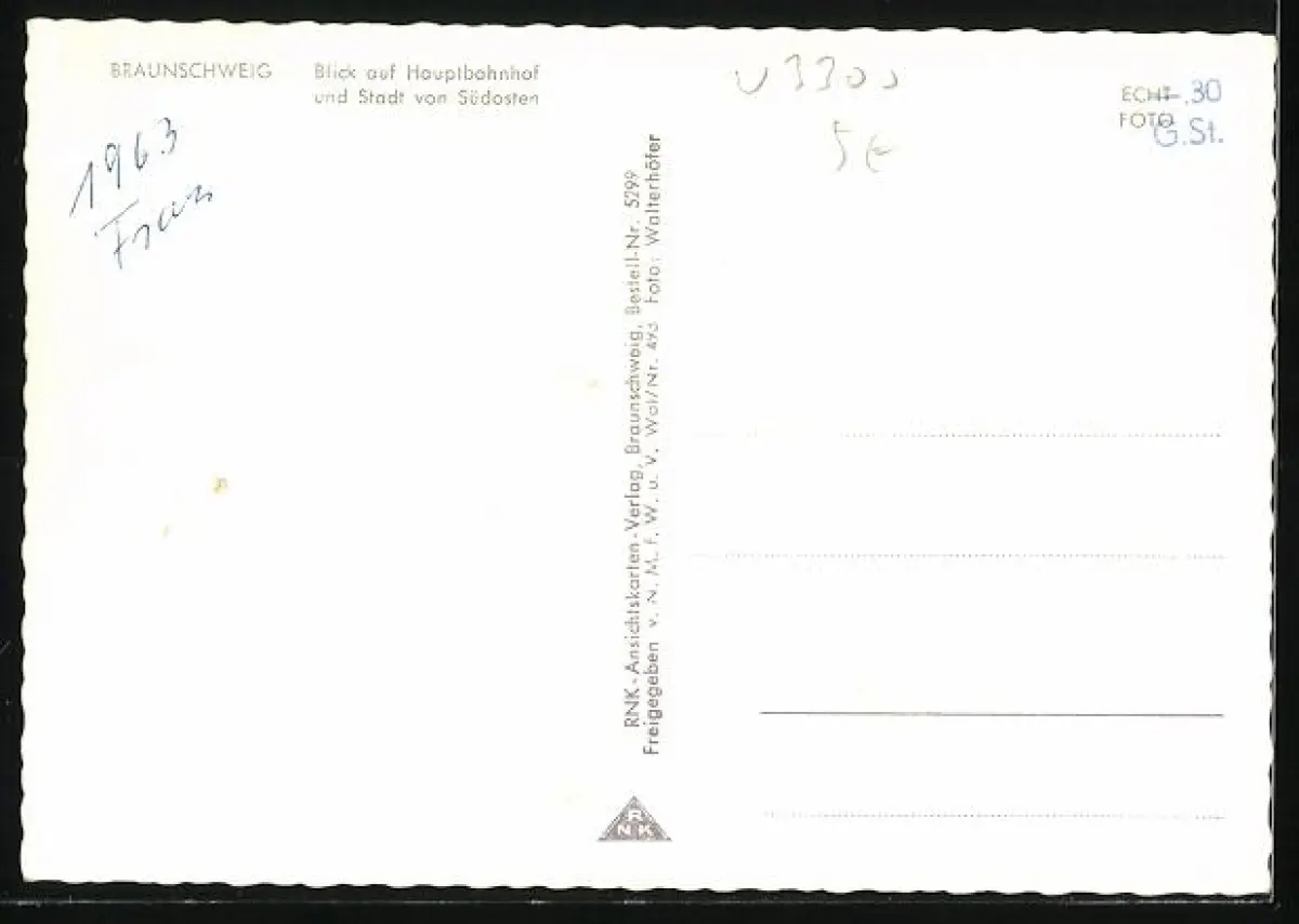 AK Braunschweig, Blick auf den Hauptbahnhof aus dem Südosten der Stadt