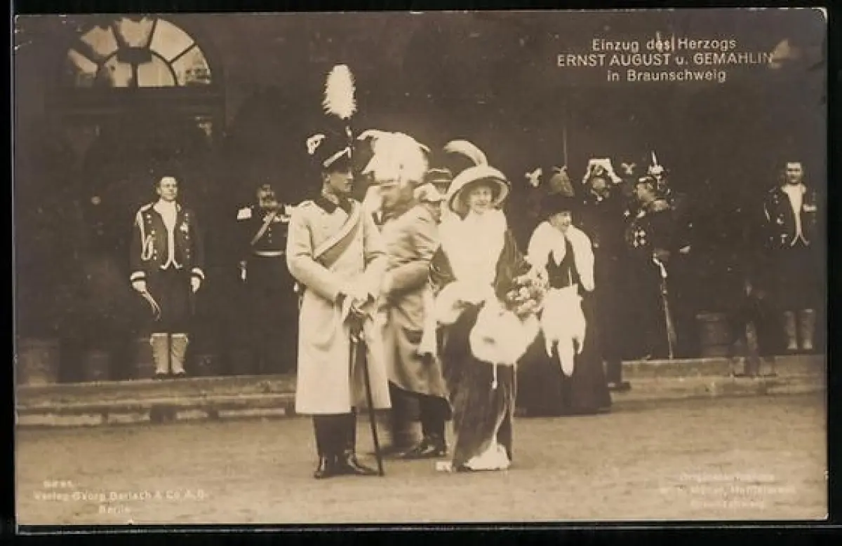 AK Braunschweig, Einzug des Herzogs Ernst August u. Gemahlin Victoria Luise
