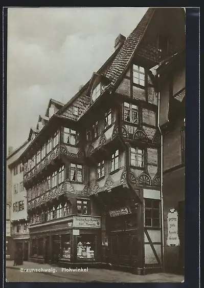 AK Braunschweig, Flohwinkel mit Geschäft von Carl Tonepöhl