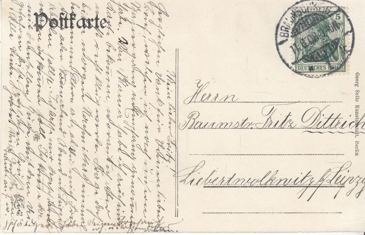 Georg Selle, ca. 1908. Karte, 9,0 x 14,0 cm