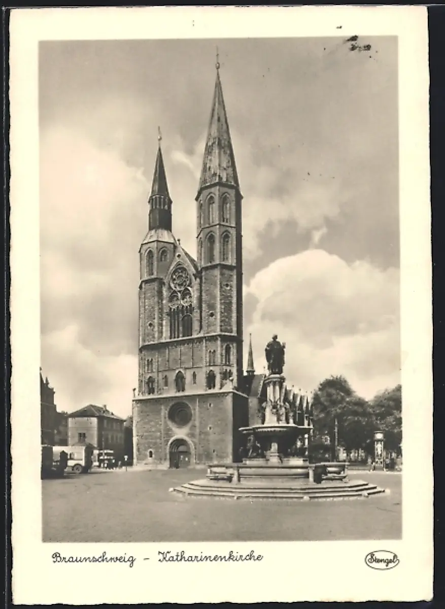 AK Braunschweig, Katharinenkirche, Brunnen mit Denkmal