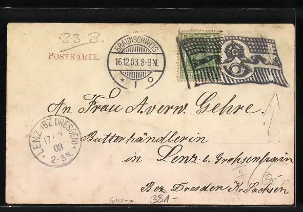 alte Ansichtskarte, gelaufen 1903, Abriebspuren li. u. re. unten, guter Zustand