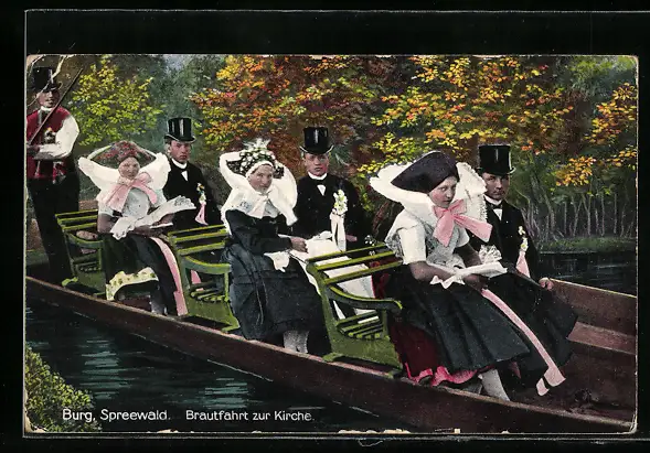 AK Brautfahrt zur Kirche in einem Spreewaldkahn, Spreewälder Tracht