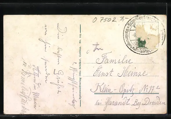 alte Ansichtskarte, gelaufen, Briefmarke entfernt, Eckknick oben links, guter Zustand