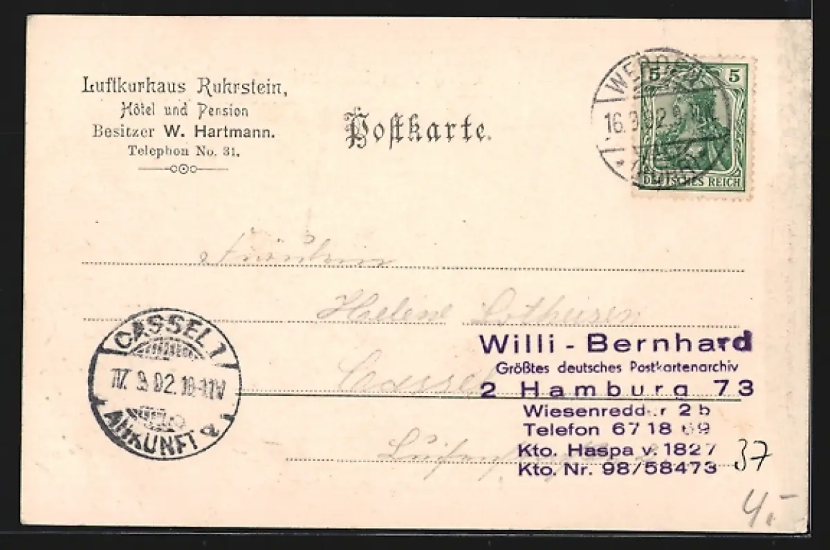 AK Bredeney a. d. Ruhr, Luftkurhaus Ruhrstein, Hotel und Pension, Inh. W. Hartmann