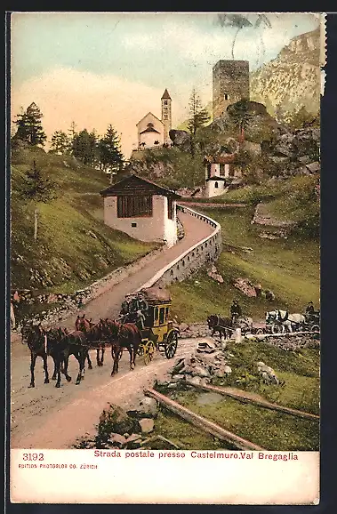 AK Bregaglia, Castelmuro, Strada postale, Postkutsche