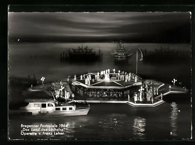 AK Bregenz / Bodensee, Bregenzer Festspiele 1964, Spiel auf dem See Das Land des Lächelns