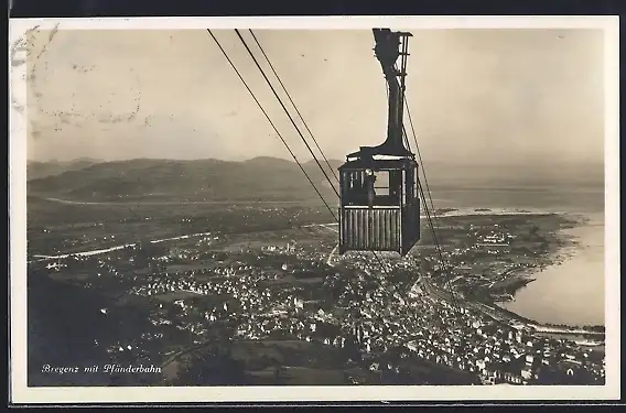 AK Bregenz, Panoramablick mit der Pfänderbahn