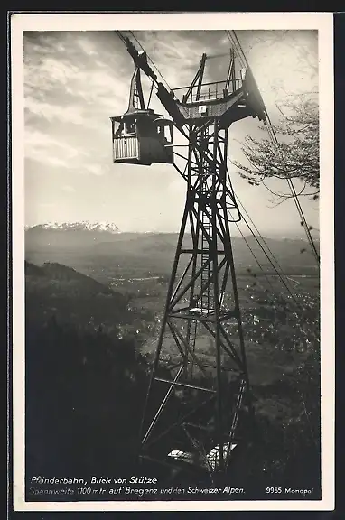AK Bregenz, Pfänderbahn, Seilbahn passiert eine Stütze