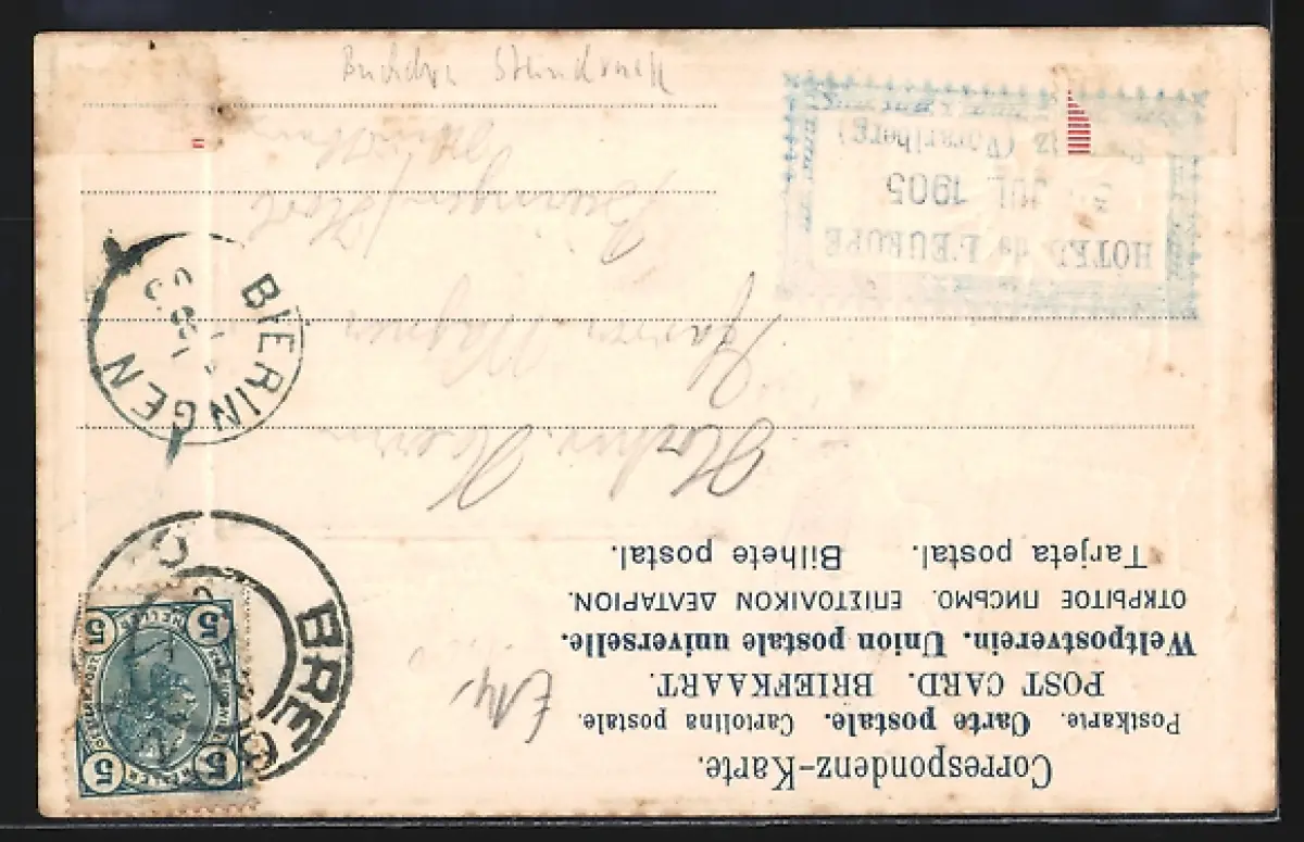 alte Ansichtskarte, gelaufen 1905, Briefmarke entfernt, guter Zustand