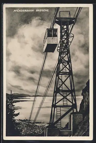 AK Bregenz, Stadtblick mit Pfänderbahn