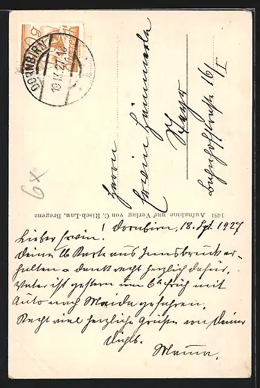 alte Ansichtskarte, gelaufen 1927, Eckknick re. unten, guter Zustand