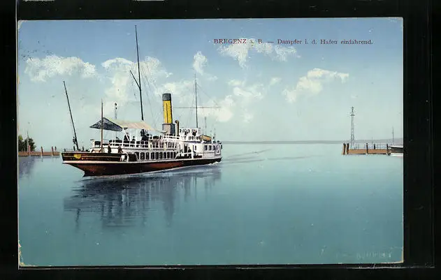 AK Bregenz a. B., Dampfer in den Hafen einfahrend