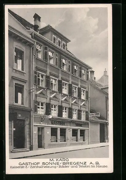 AK Bregenz a. B., Gasthof Sonne, Inh.: M. Karg, Kaiserstrasse 8
