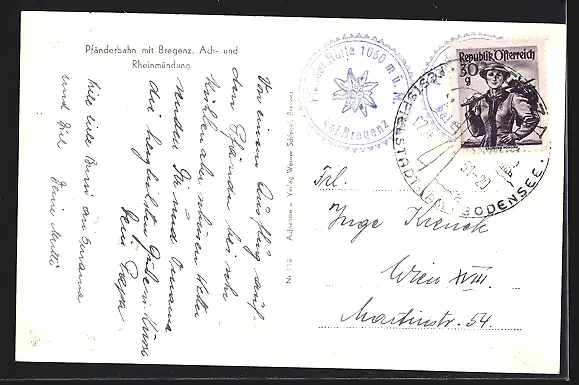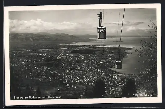 AK Bregenz am Bodensee, Pfänderbahn mit Panorama, Seilbahn