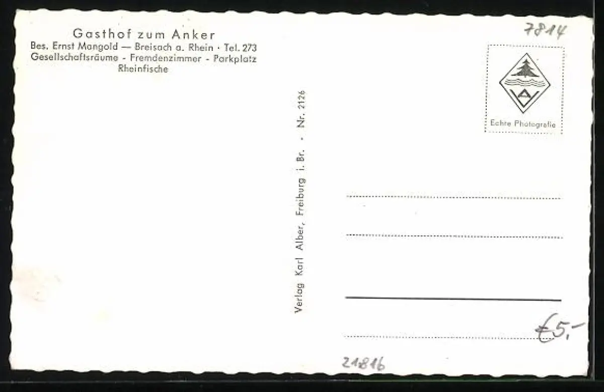 AK Breisach /Rhein, Gasthof zum Anker, Inh. Ernst Mangold, Gesellschaftsräume, Stadtansicht