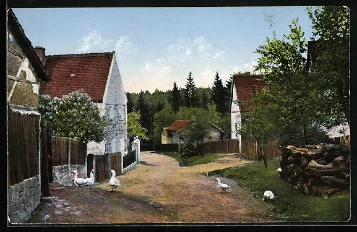 AK Breitenbach / Zeitz, Bauernhäuser, Gänse, ländliche Strasse