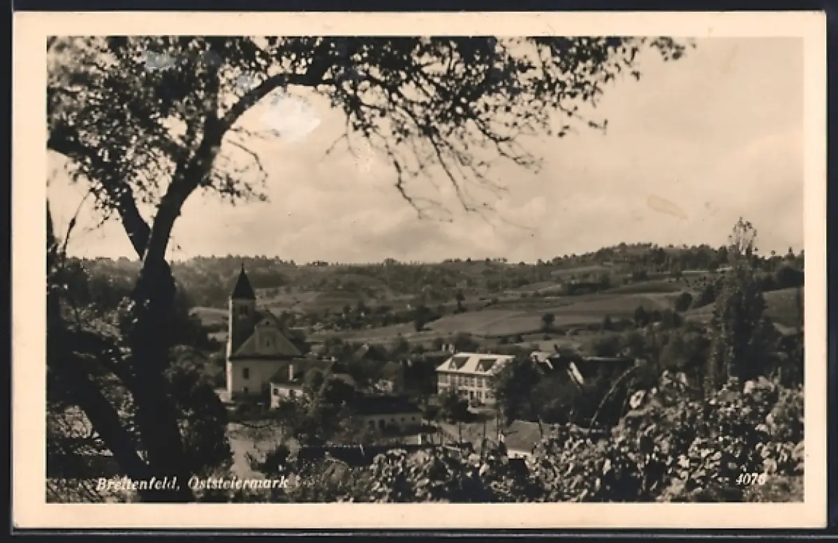 AK Breitenfeld /Oststeiermark, Ortspartie mit Kirche