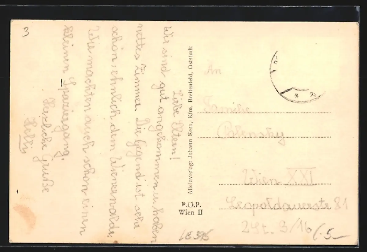 alte Ansichtskarte, gelaufen, Briefmarke entfernt, vorderseitig Klebe- und Papierreste, guter Zustand