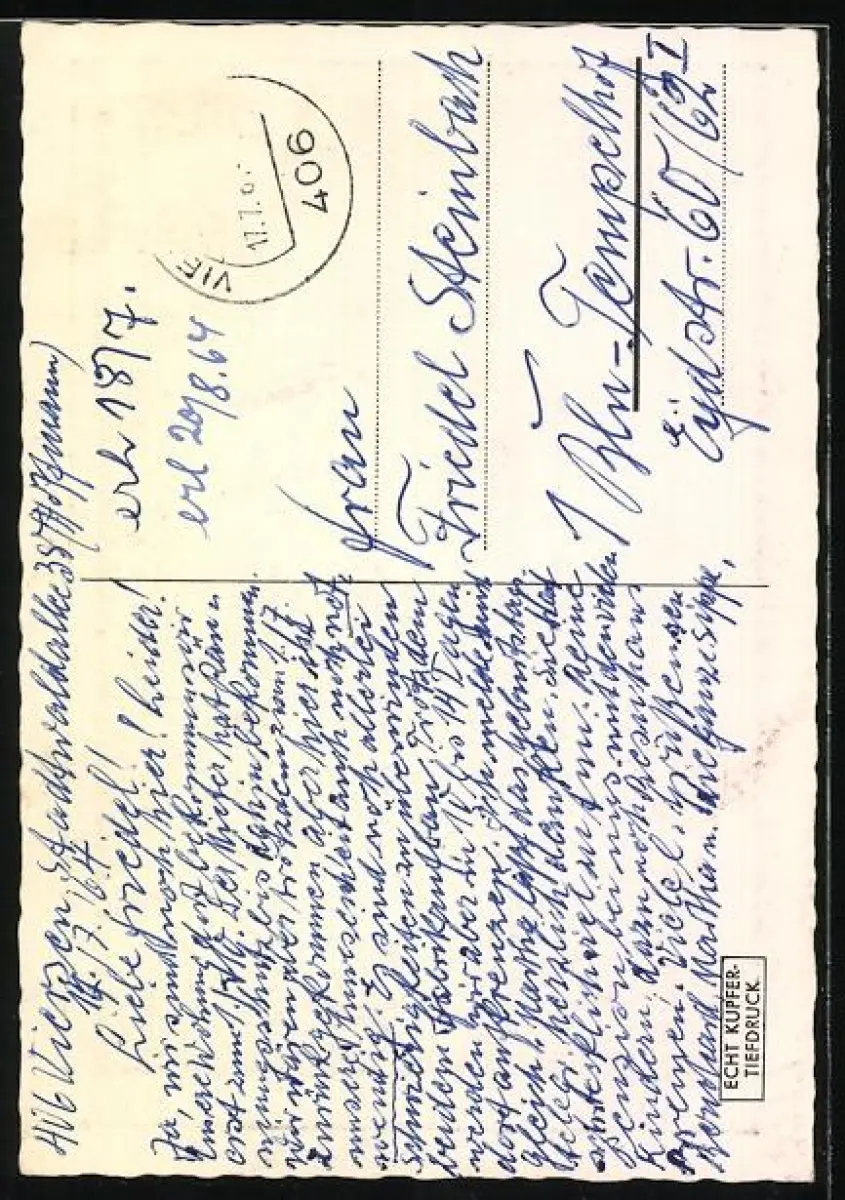 alte Ansichtskarte, gelaufen 1964, Briefmarke entfernt, guter Zustand