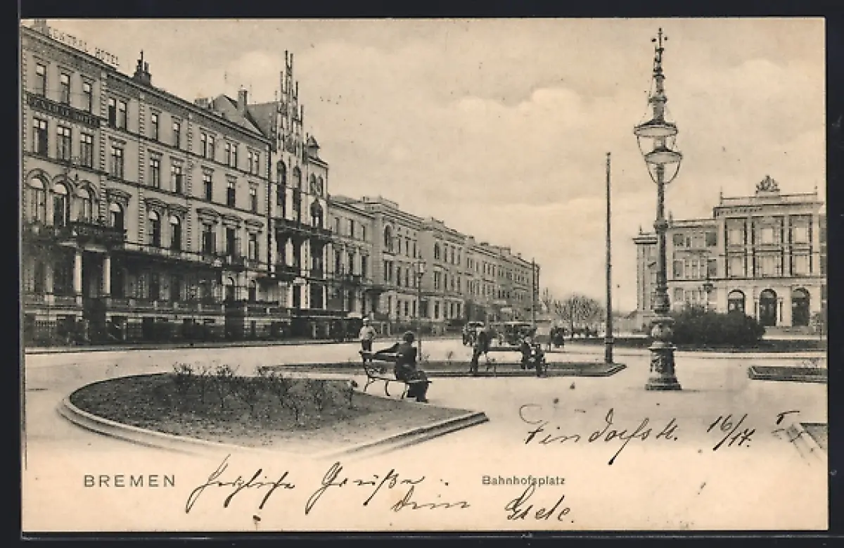 AK Bremen, Bahnhofsplatz mit Strassenpartie