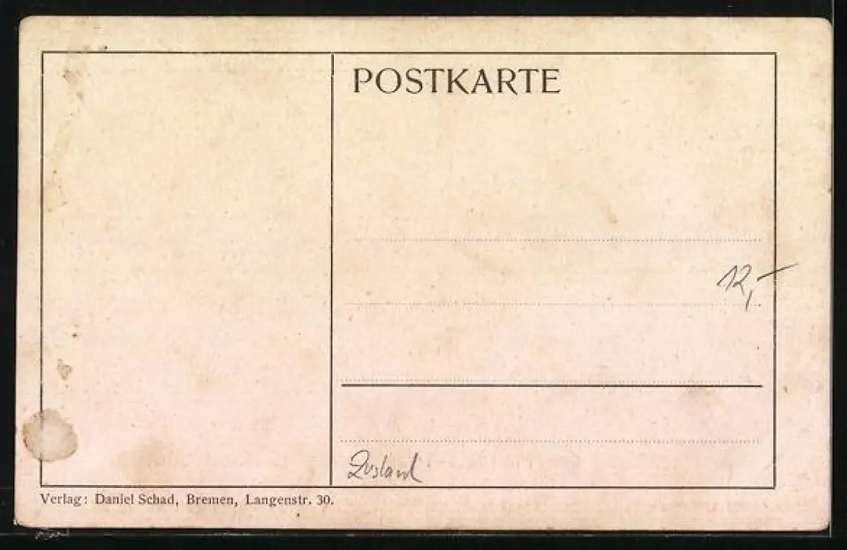 alte Ansichtskarte, ungelaufen, Eckknick links oben, rückseitig Klebe- und Papierreste, sonst guter Zustand