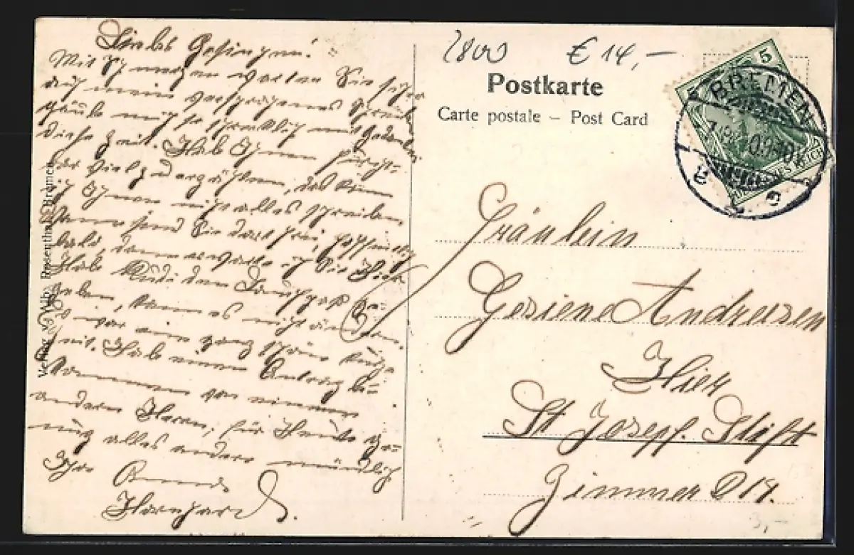 alte Ansichtskarte, gelaufen 1910, Stempelspur, guter Zustand