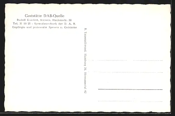 AK Bremen, Gaststätte DAB-Quelle, Inh. Rudolf Kniefert, Innenansicht