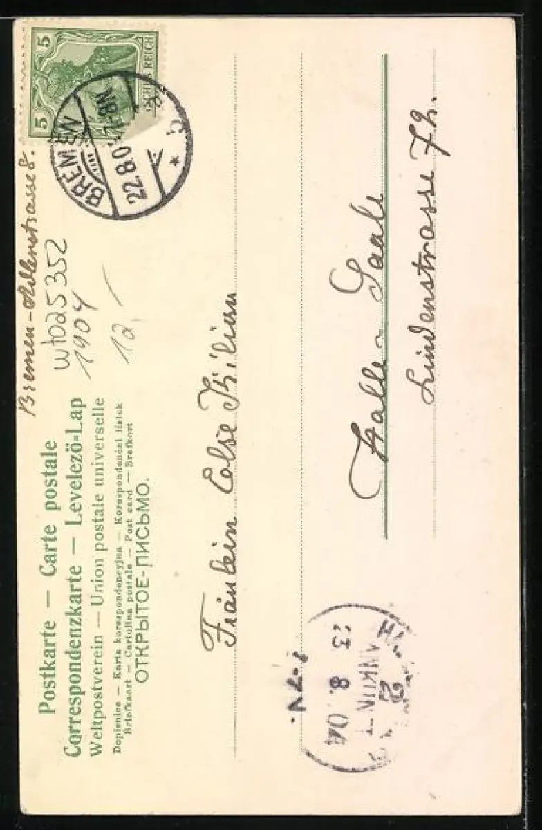 alte Ansichtskarte, gelaufen 1904, guter Zustand