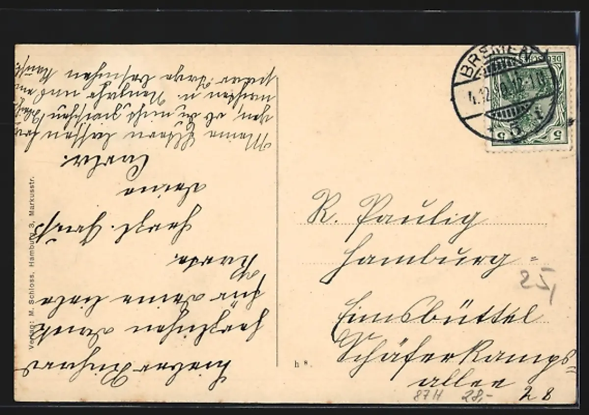 alte Ansichtskarte, gelaufen 1910, Stempelspur, guter Zustand