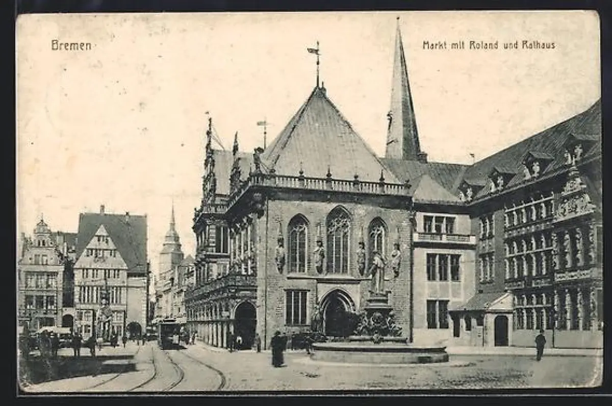 AK Bremen, Markt mit Roland und Rathaus, Strassenbahn