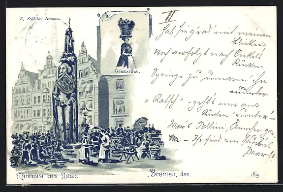 AK Bremen, Marktszene beim Roland
