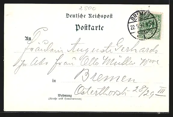 alte Ansichtskarte, gelaufen 1897, guter Zustand