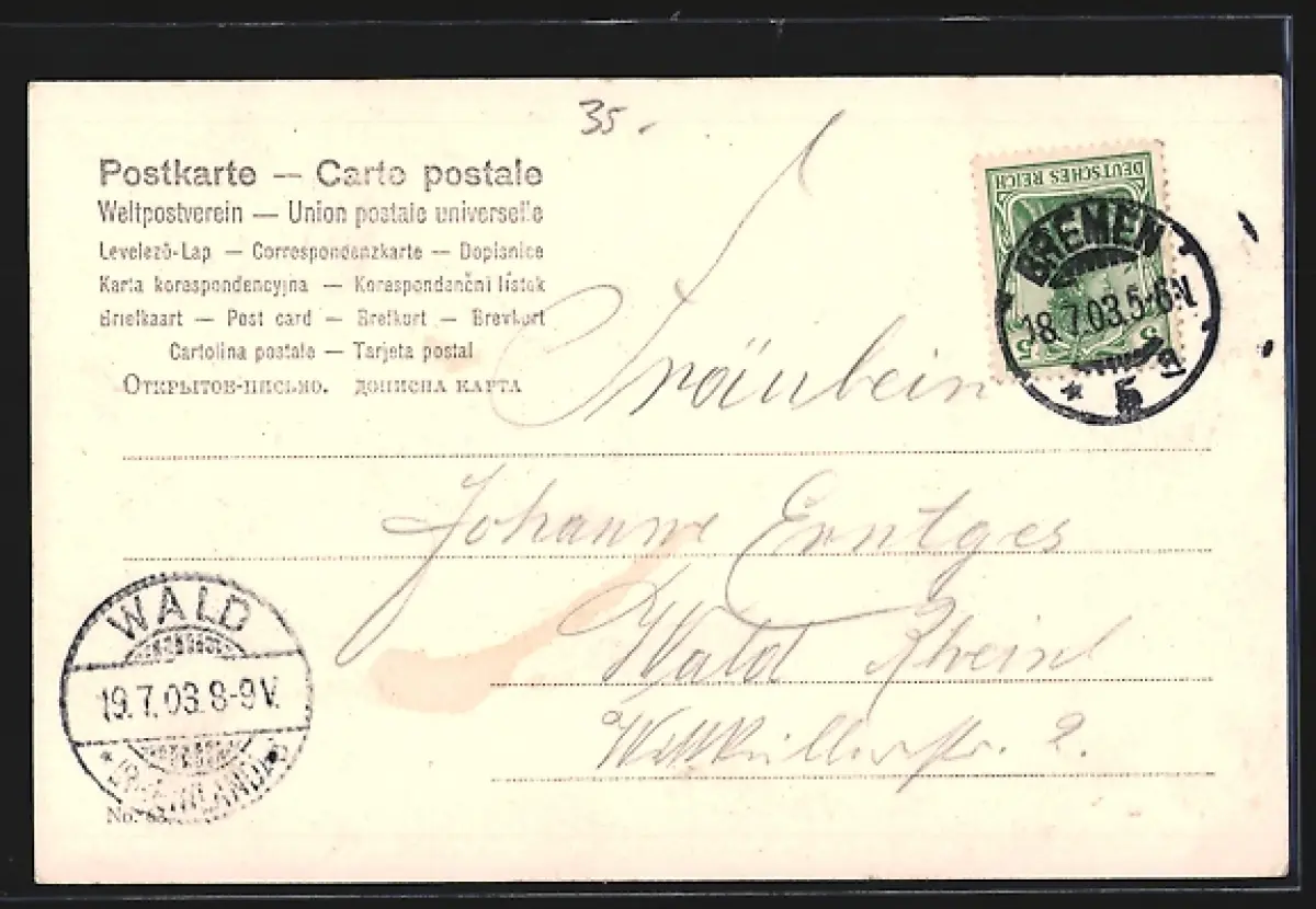gelaufen 1903, guter Zustand