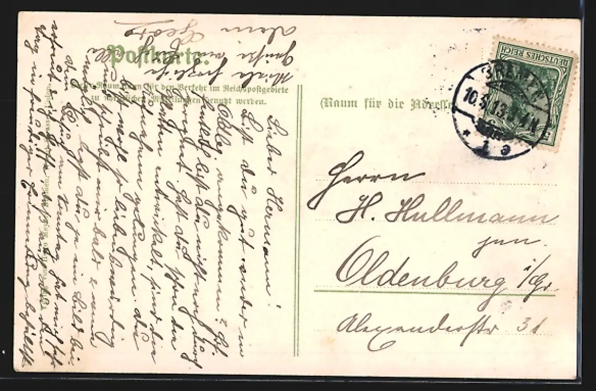 alte Ansichtskarte, gelaufen 1913, guter Zustand