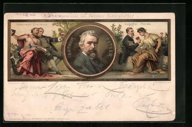 AK Bremen, Wandgemälde im Rathskeller, Arthur Fitger