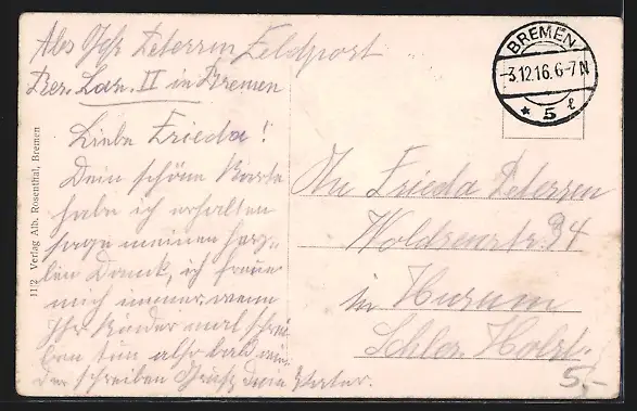 alte Ansichtskarte, gelaufen 1916, Eckknicke unten, guter Zustand